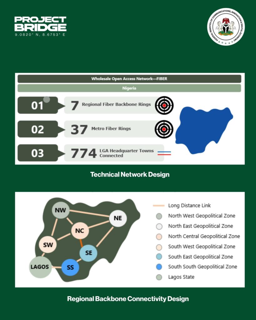 The technical design for Project Bridge is a masterclass in redundancy and reach. It features seven regional backbone rings that will connect Nigeria’s six geopolitical zones, ensuring minimal service interruptions and seamless data flow. From there, the network will extend to 37 metropolitan areas and every one of the 774 Local Government Areas (LGAs), creating a resilient framework for economic growth, education, and innovation.