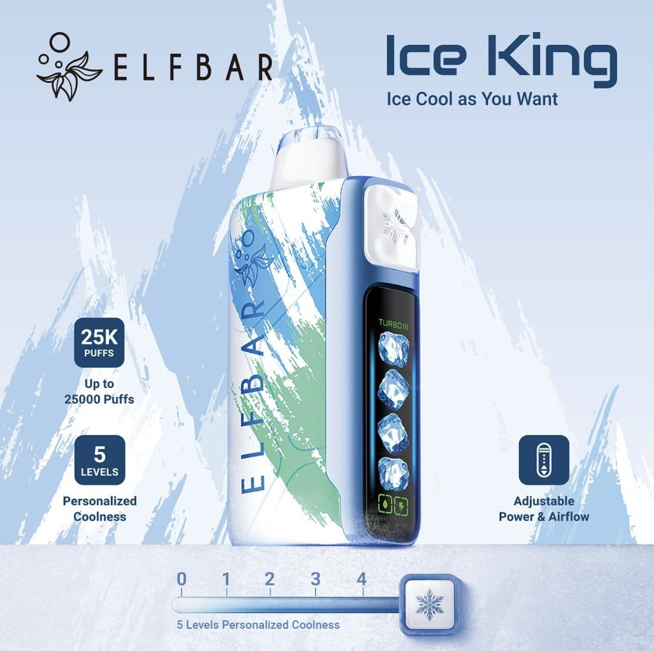 The Elfbar Ice King 30k Puffs is a high-performance disposable vape designed for extreme longevity and customizable chill. It features a massive 30,000 puff capacity, an 850mAh rechargeable battery, and a 5-level adjustable cooling dial to control your “ice” intensity.